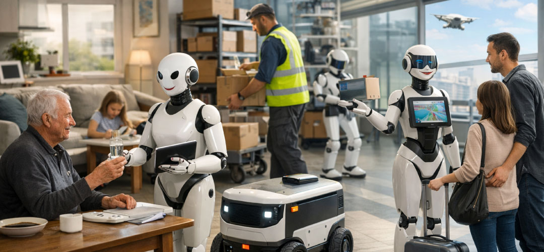 Akıllı robotlar en hızlı sağlık-bakım alanlarında ve lojistik-üretim sektöründe yaygınlaşacak. Hastanelerde hemşireler yardımcı olan, hastalara ilaç dağıtan ve temel kontrolleri yapan robotlar şu anda test aşamasında. Yaşlanan dünya nüfusu düşünüldüğünde bakım robotları bir lüks değil, adeta bir zorunluluk. Depolarda ürün taşıyan, ürün paketleyen robotlar zaten günümüzde aktif. Gelecekte ise bu robotlar daha güvenli ve insanlarla yan yana çalışabilecek hale gelecek. Ağır yük taşıma, tehlikeli alanlarda çalışma insanların rollerini hafifletecek.