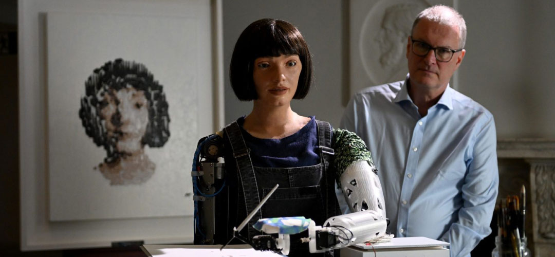 Aidan Meller tarafından geliştirilen sanatçı robot Ai-Da, dünyanın ilk ultra gerçekçi robot sanatçısı. İnsan yüzüne çok benzeyen yapısıyla Ai-Da, “Uncanny Valley” etkisini en yoğun hissettiren robotlardan biri olarak ayrıca resim yapabiliyor, şiir yazabiliyor ve sergiler açabiliyor…