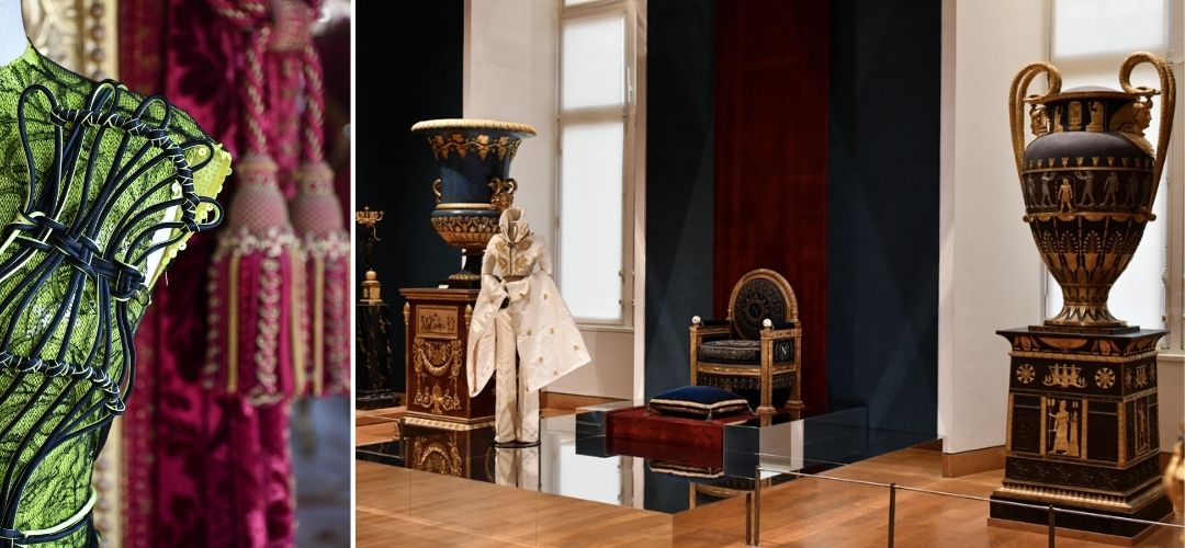 Nathalie Crinière ve ekibi, moda parçalarının müze içine ince bir şekilde entegrasyonunu sağlamış. Nişlerden, vitrinlerden ve mevcut mimari unsurlardan yararlanarak, giysilerin sanki her zaman oradaymış gibi göründüğü uyumlu bir diyalog yaratılmış.