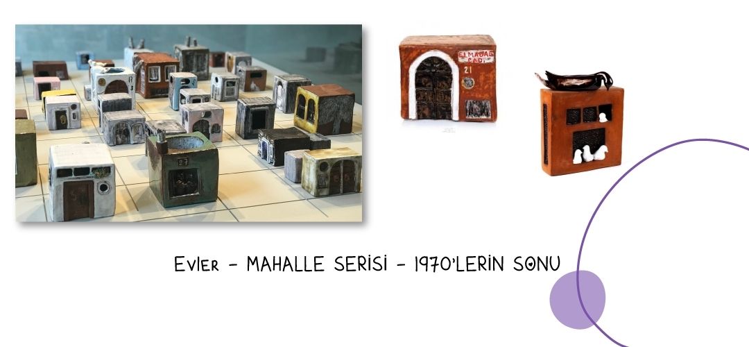 Evler ve Mahalle – 1970’lerin sonu: Füreya, 1973’te Elmadağ’daki Arif Paşa Apartmanı’na taşınıyor ve odasının penceresinden gördüğü Surp Agop Sıra Evleri ona ilham oluyor. Pencereleri inceleyen sanatçı, bu pencerelerin ardında nasıl hayatlar olacağını hayal ediyor hep. Bunları zaman içinde küp biçimindeki seramik evlere dönüştüren Füreya, farklı renklerde ve dokularda oluşturuyor evleri. Bu evlerin her birini kompakt olarak ele alıp, içeride pencere önünde oturan birini, yandaki ağacı veya çatıya konmuş bir kuşu da şekillendiriyor. Evler bir zaman sonra “Mahalle” serisine dönüşüyor. Füreya Koral perspektifi ile İstanbul mahalle kültürü ve kentleşmeye dair gözlemler çağdaş bir bakış açısıyla seramik eserlere yansıyor.